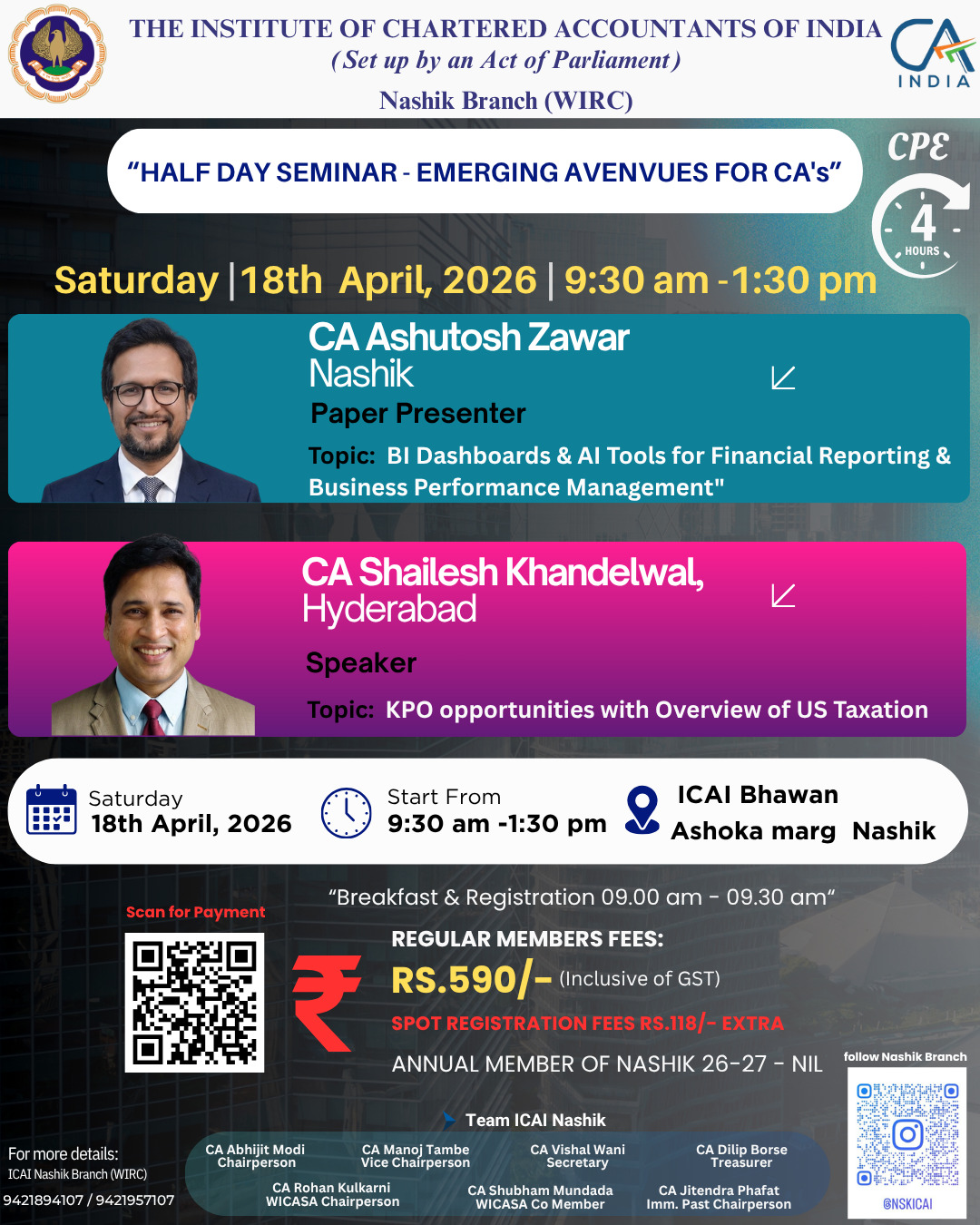 located at ICAI Bhawan Ashoka Marg Nashik. CPE Hours: 4 |