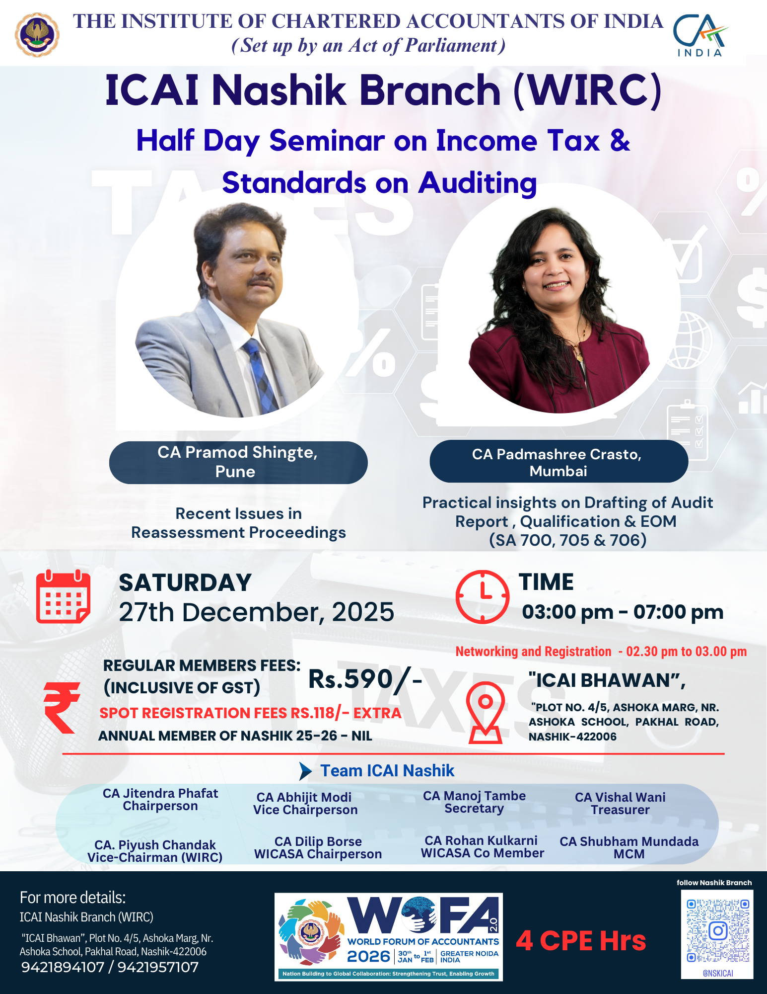 located at "ICAI Bhawan”, Plot No. 4/5, Ashoka Marg, Nr. Ashoka School, Pakhal Road, Nashik-422006. CPE Hours: 4 |