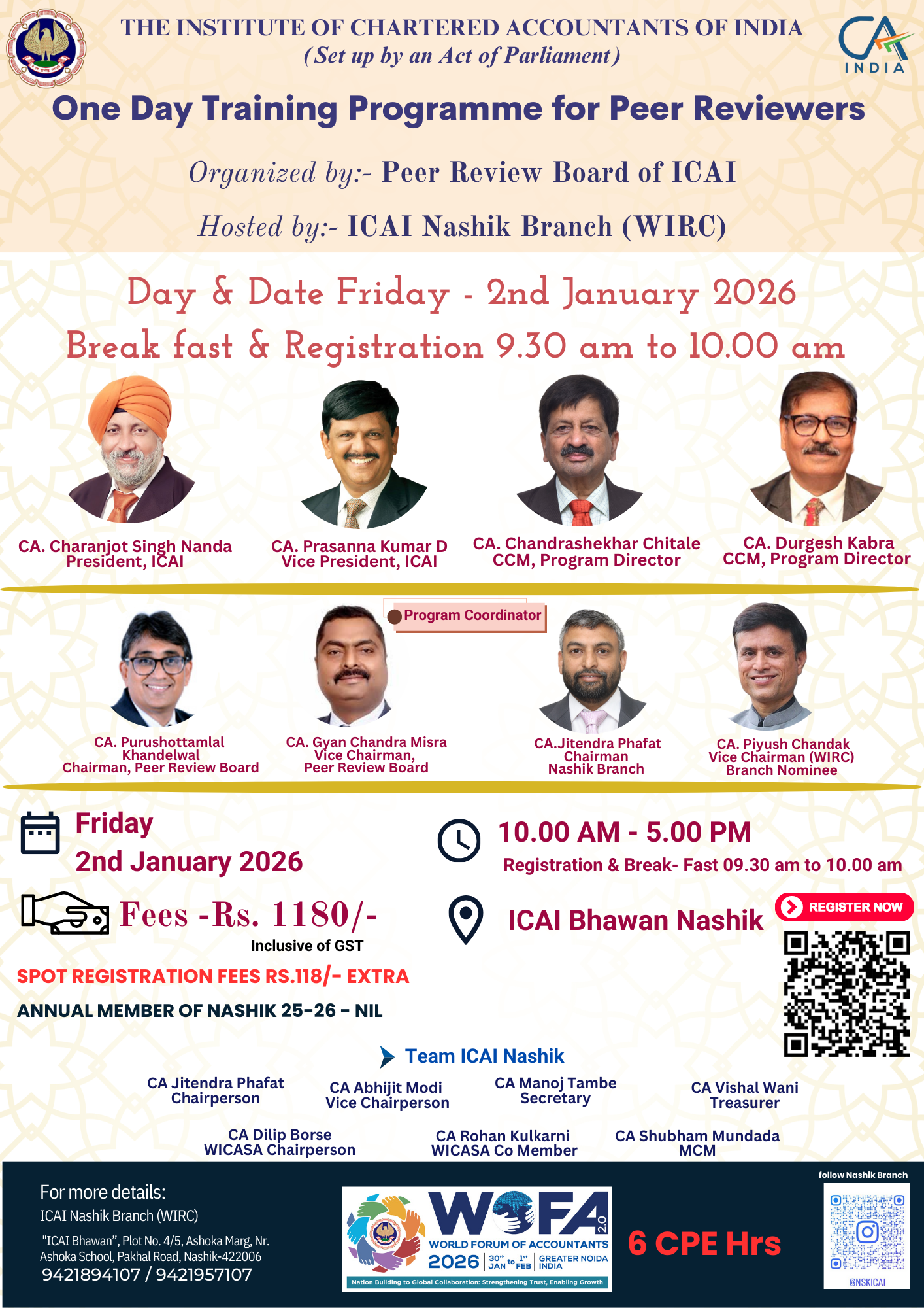 located at ICAI Bhawan, Plot No. 4/5, Ashoka Marg, Nashik 422006. CPE Hours: 6 |
