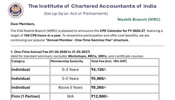- Seminar on Income tax covering recent landmark judgements, compilation of case laws on unexplained income and investments and common traps and trends in TDS on 21st, keeping in mind the latest ligations in Nashik